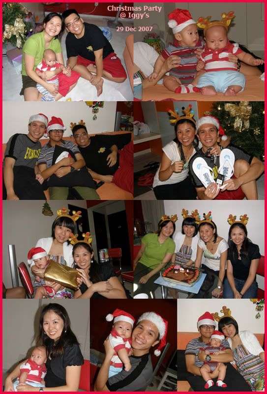 we made everybody put on reindeer hairbands and santa hats for the party (of course, some were more cooperative than the others :P)... even the two babies took turns to put on the baby-sized santa hat, so cute huh! and it's a good thing mikel didn't sleep through the party! after the food, we did our presents exchange - i received a lovely belt from lexin, too bad she & ben couldn't join us... and to my dearest, now you know this belt does NOT come with the pants, so don't keep asking! :P the bf got a pair of billabong slippers from pauline (don't worry, it fits perfectly and it's not gay lah...).